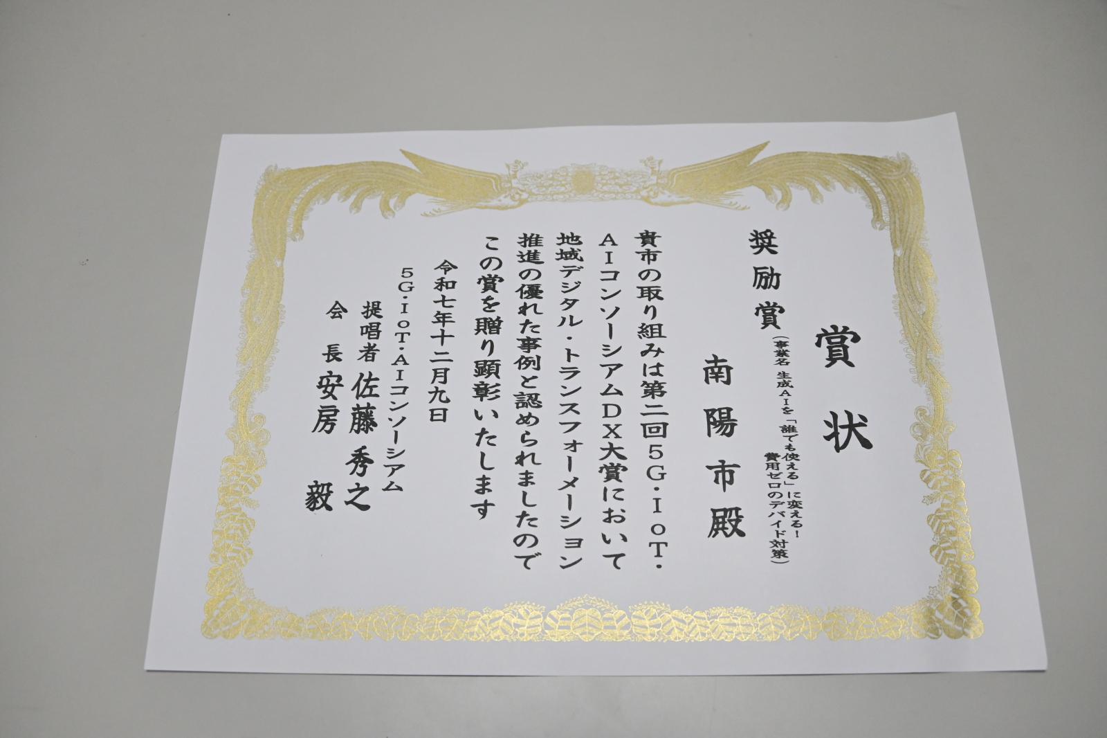 県内の主要経済団体や企業、大学、金融機関、行政などが加盟し、地域や県民のデジタル活用意識の醸成に努めている「5G・IoT・AIコンソーシアム」が主催するDX大賞において、本市が取り組んでいるDX推進事業「生成AIを『誰でも使える』に変える!費用ゼロのデバイド対策」が評価され、5G・IoT・AIコンソーシアム主催の「DX大賞」において、第3位に相当する「奨励賞」を受賞いたしました。本市では令和5年度から生成AIの活用に取り組んでおり、これまでの間に培った600例以上の実務的なプロンプトノウハウをホームページを通じて広く公開し、市民や企業が費用をかけずにAIを使いこなせる環境を整備することで、地域全体の生産性向上とDX推進を図ることを目的としています。プロンプト集はホームページで公開しておりますのでご活用ください。