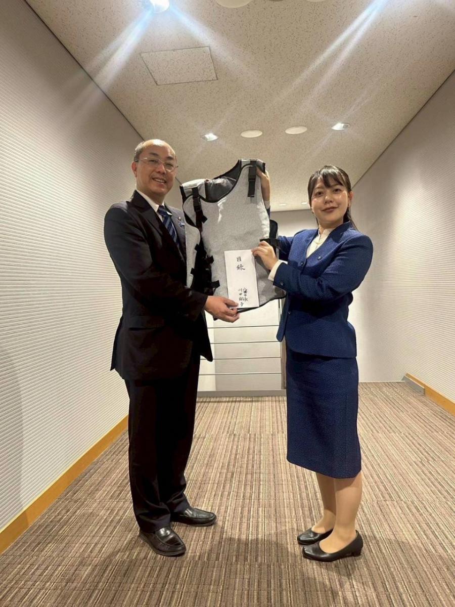 南陽市での熊の被害を知り、警戒中に負傷した職員をご心配され、八幡市のメーカーが製造している防刃性能に優れた防具を、驚きのスピードで南陽市に寄贈いただきました。