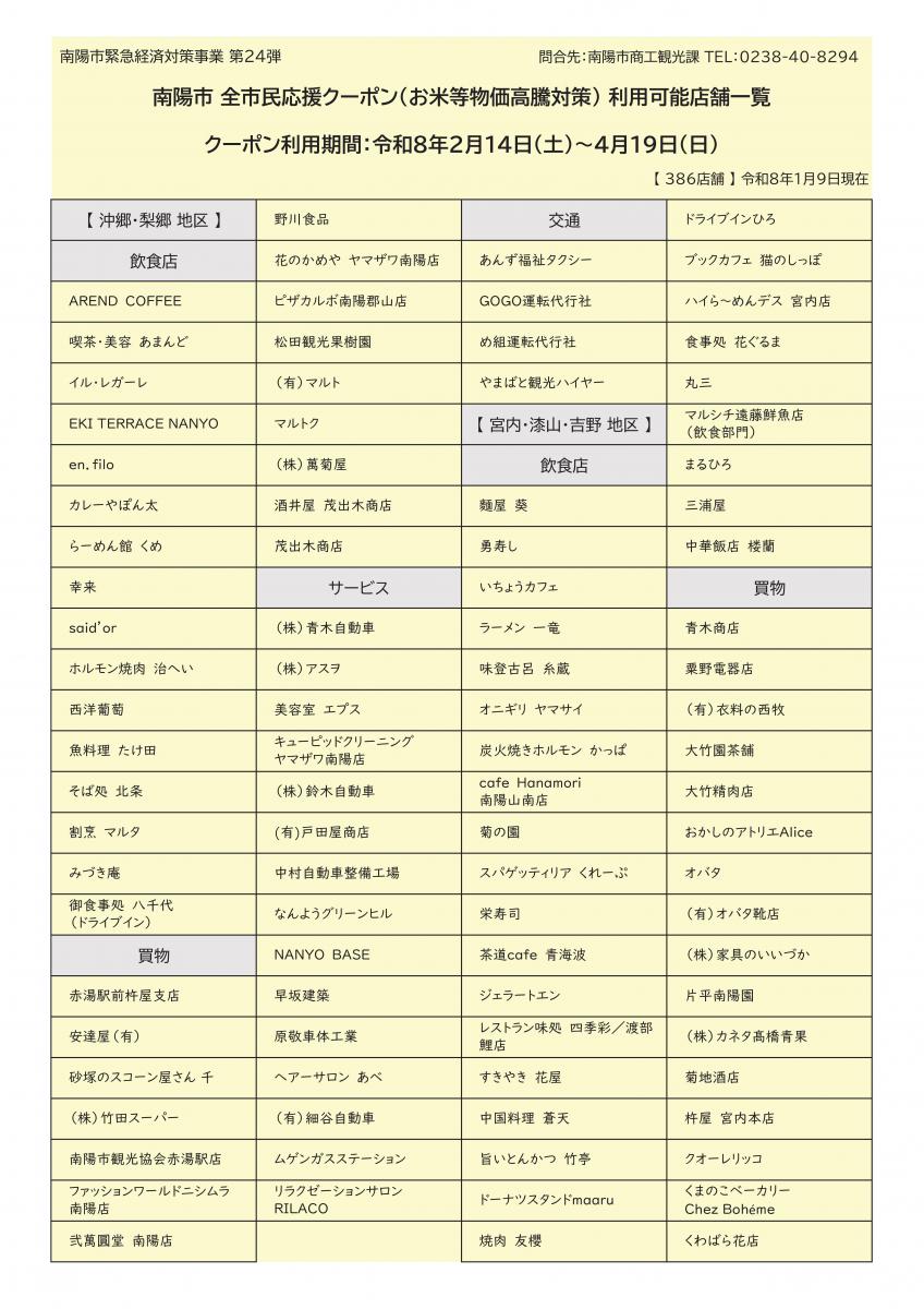 南陽市緊急経済対策事業第24弾「南陽市全市民応援クーポン(お米等物価高騰対策)事業」〔山形県協調事業〕