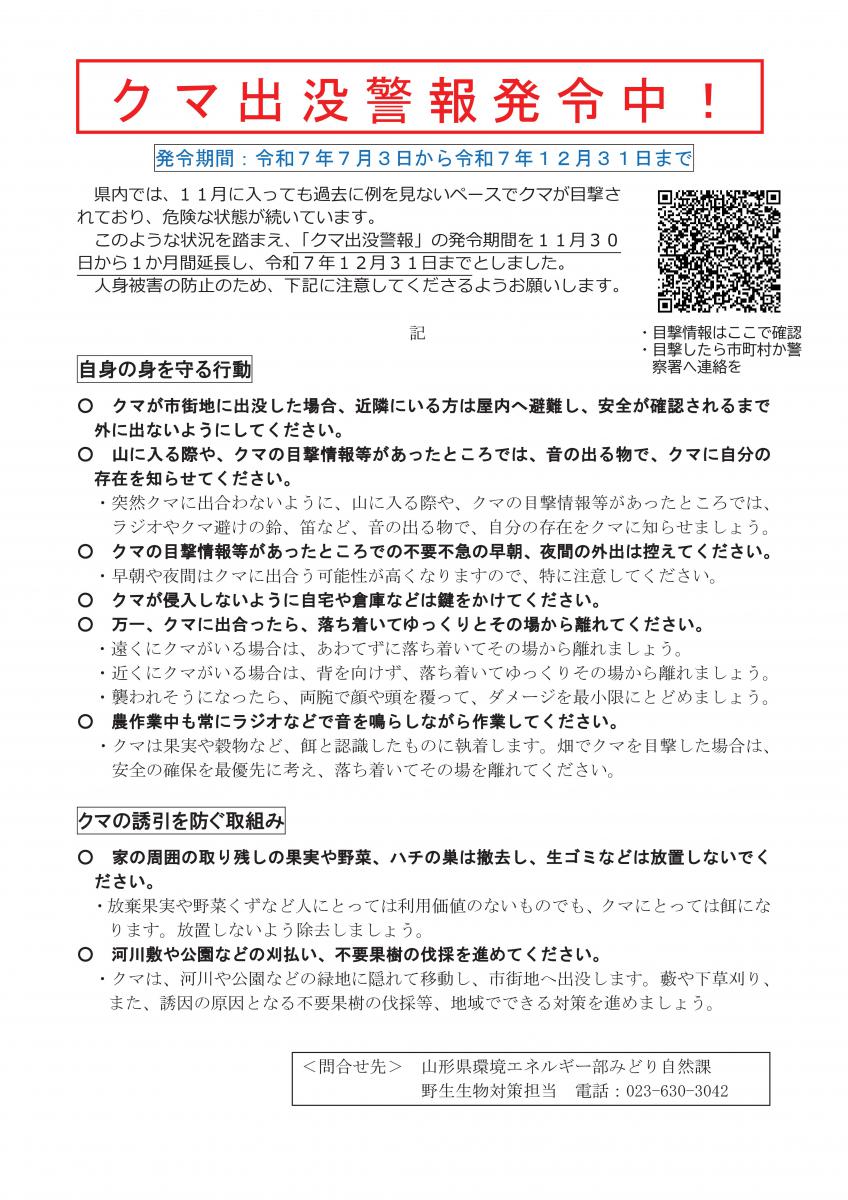 発令期間を1か月延長し、令和7年12月31日まで延長しました。