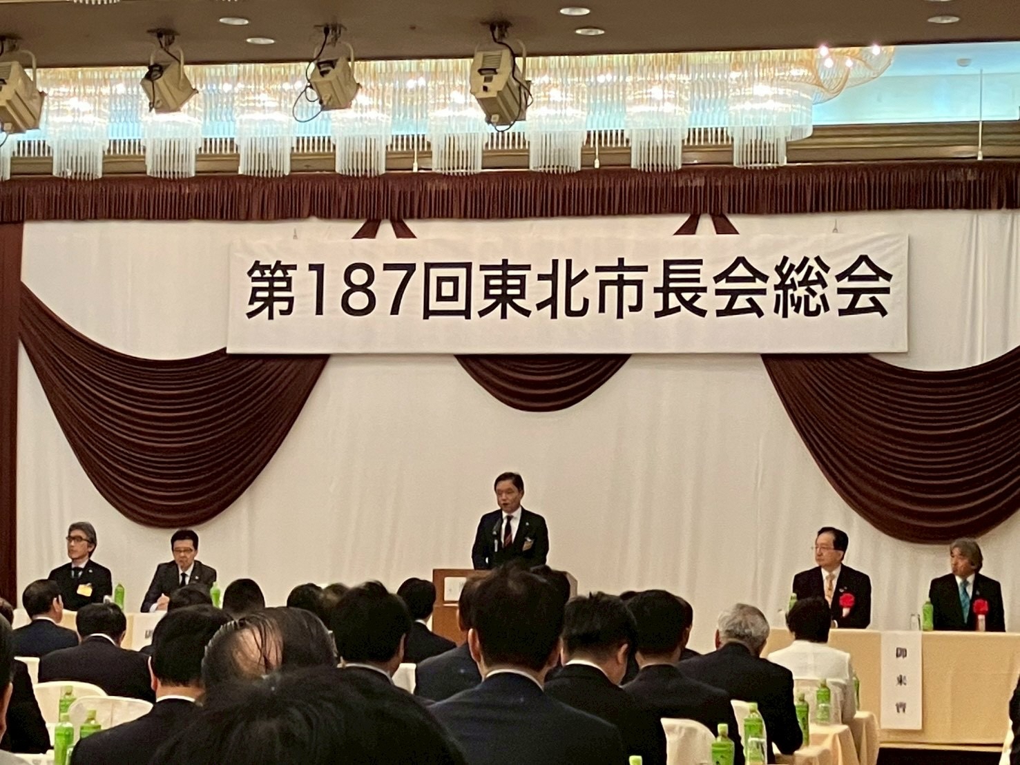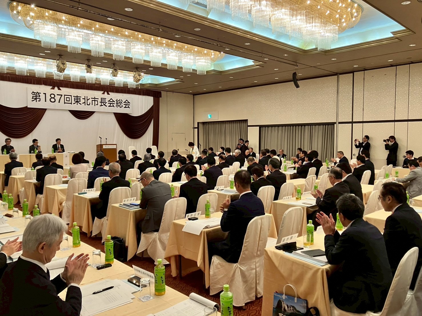 10月16日、岩手県宮古市「浄土ヶ浜パークホテル」において、第187回東北市長会総会が開催され、白岩市長が出席しました。議事では、各県市長会提出特別決議案と提出議案を審議の上承認されました。
