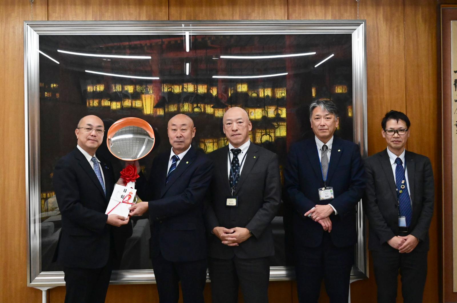 11月18日(火)に「カーブミラー受贈式」が行われ、山形おきたま農業協同組合様と全国共済農業協同組合連合会山形県本部様から、市の交通安全のためにカーブミラーを5基を寄贈いただきました。