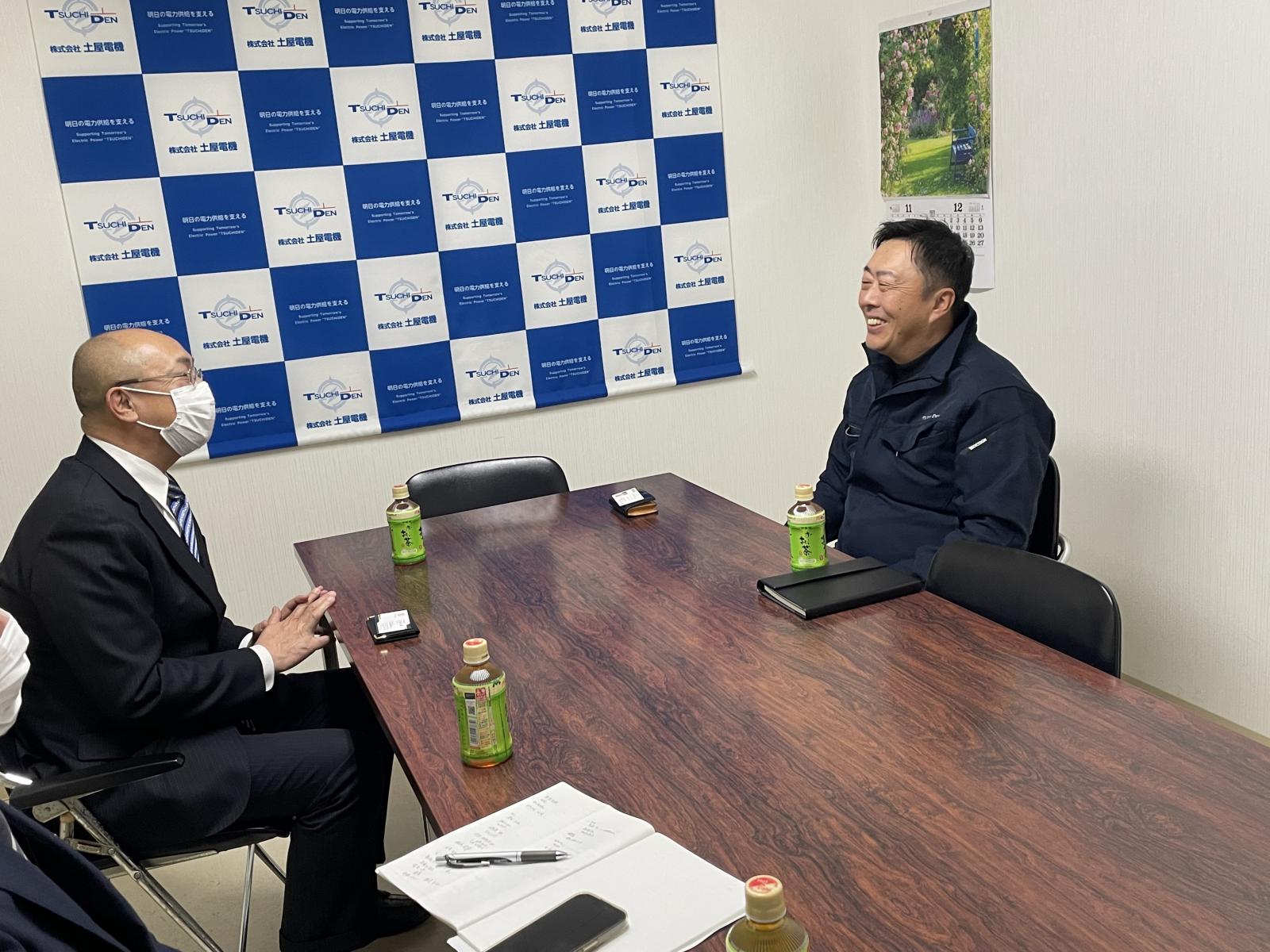 12月16日(火)、㈱土屋電機を白岩市長と商工観光課職員が訪問し、土屋代表取締役社長と情報交換を行いました。