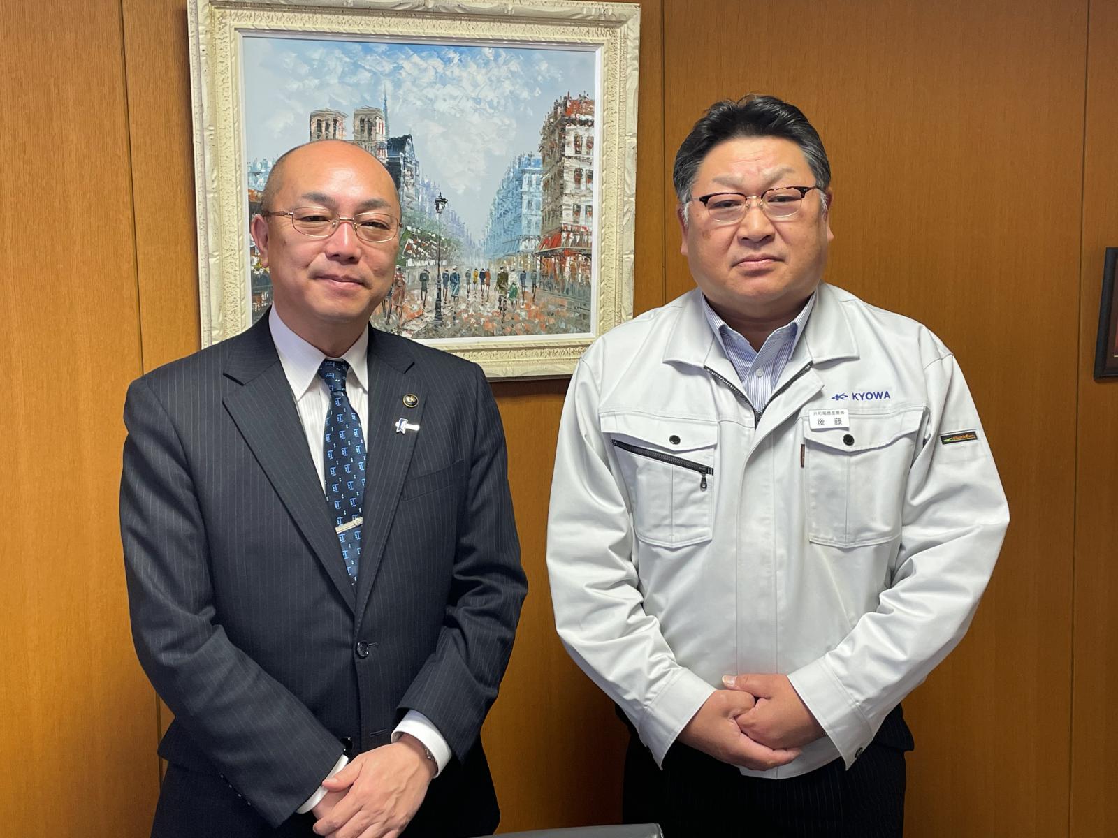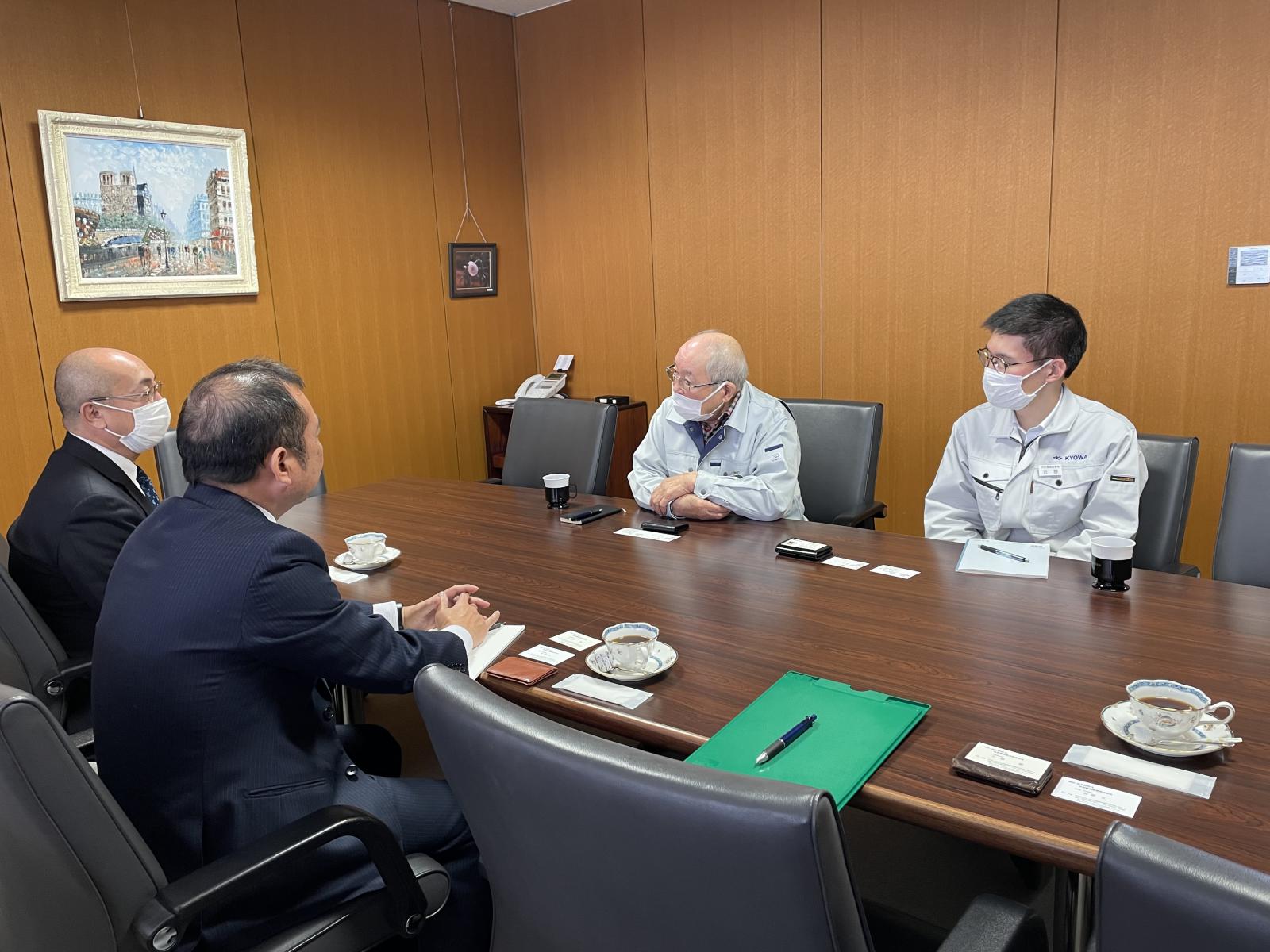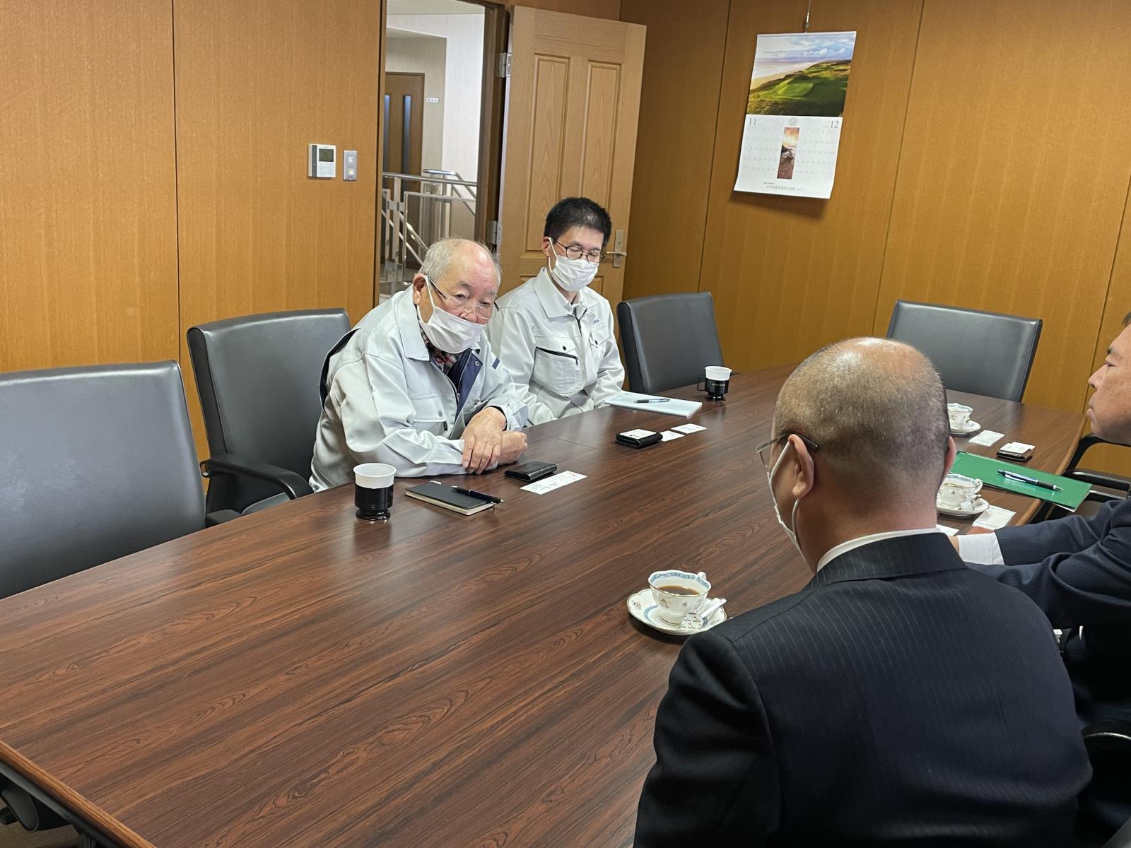 12月18日(木)、共和電機産業㈱を白岩市長と商工観光課職員が訪問し、土屋取締役会長と情報交換を行いました。