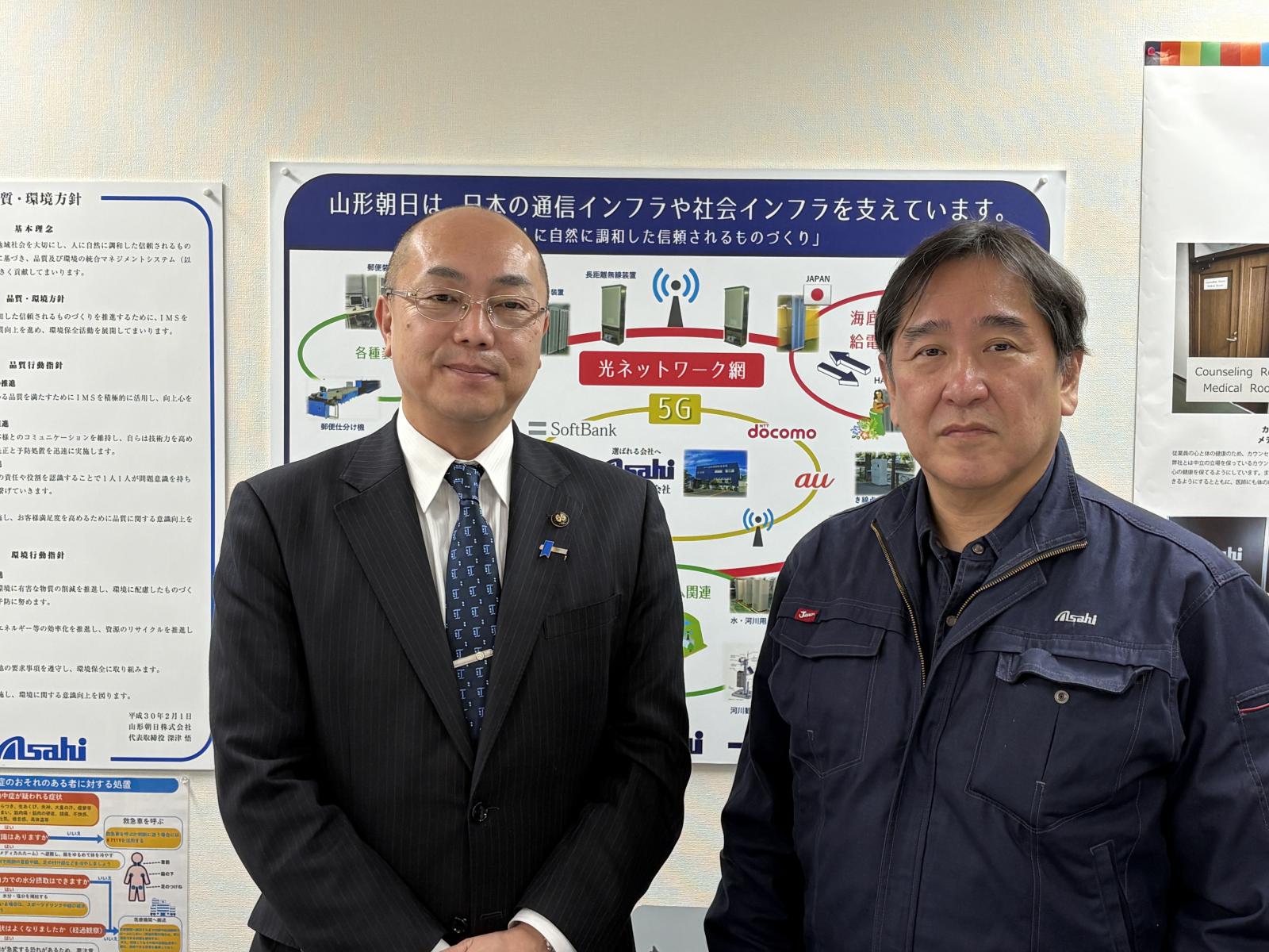 12月18日(木)、山形朝日㈱を白岩市長と商工観光課職員が訪問し、深津代表取締役社長と情報交換を行いました。
