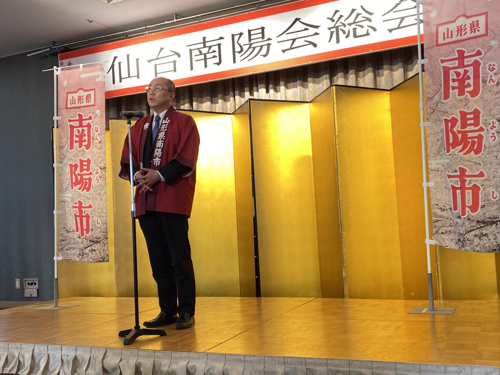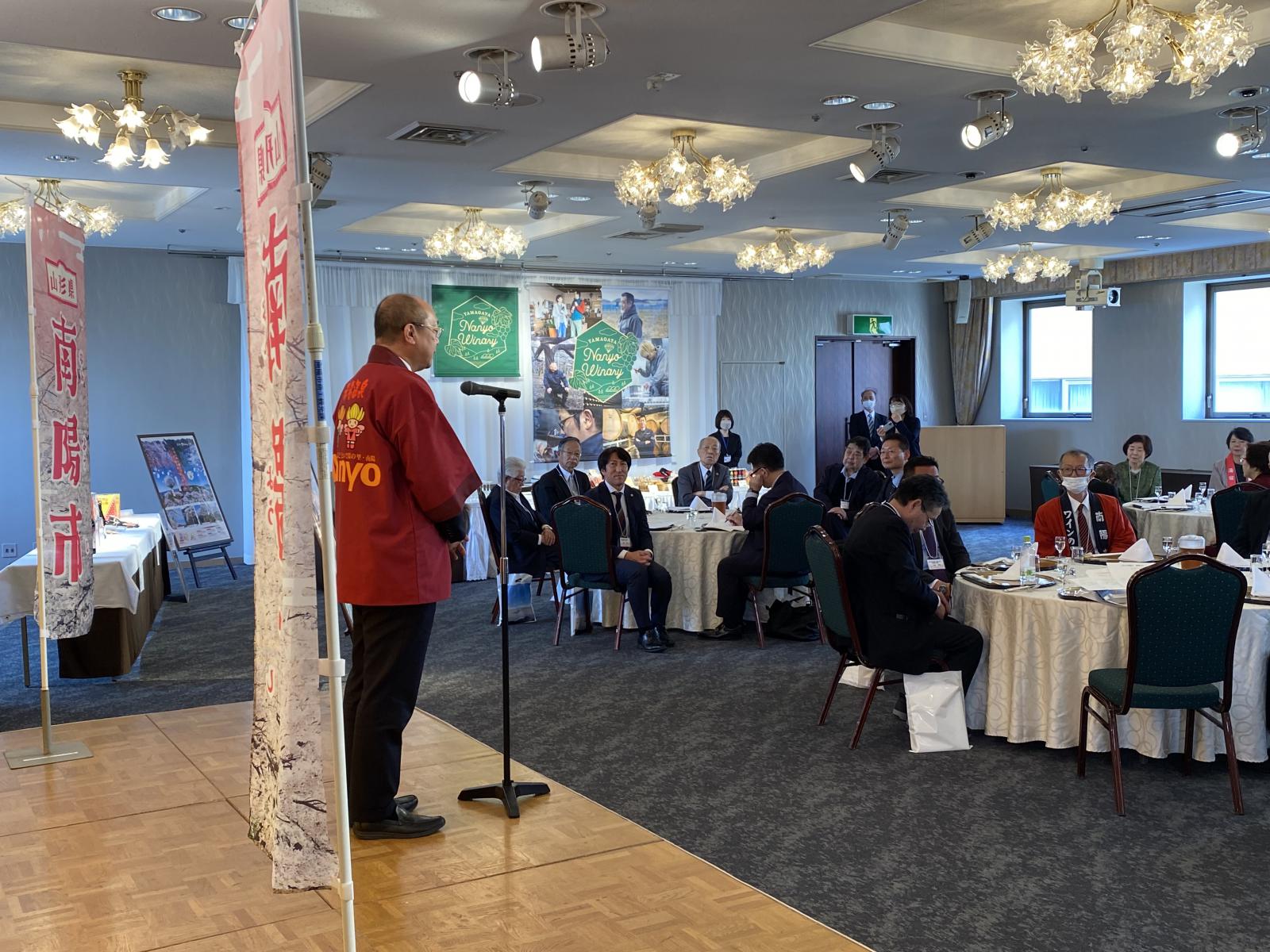 また懇親会では、名誉会長の白岩市長から「南陽市では、「訪れてくれる方」や「かかわり続けてくれる方」を増やす、関係人口づくりに力を入れています。皆さまにはそれぞれのお立場から南陽市を「応援団」として支えていただきますようお願い申し上げます」と挨拶がありました。
