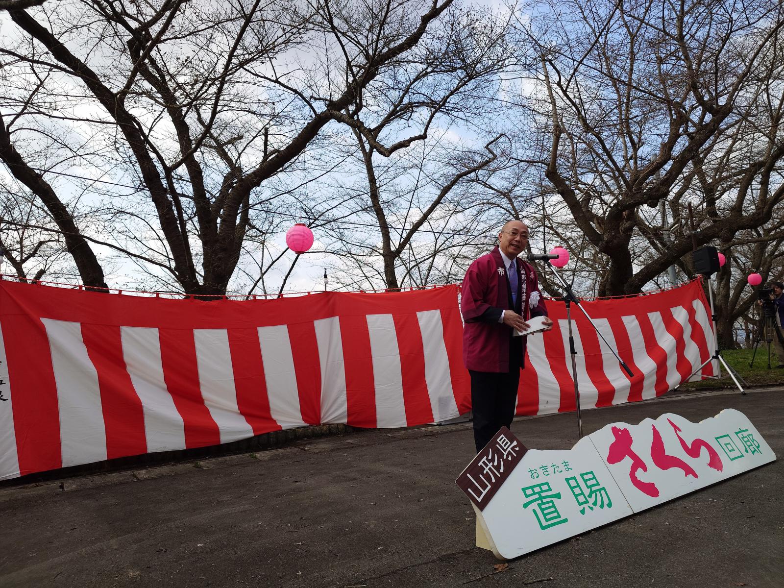 白岩市長からは、「置賜さくら回廊は今年で25年目を迎える。本日お越しの皆様には、烏帽子山公園の桜をはじめ、置賜さくら回廊を巡りながら、春の息吹とともに心に残るひとときをお過ごしいただければ幸い」と挨拶がありました。
