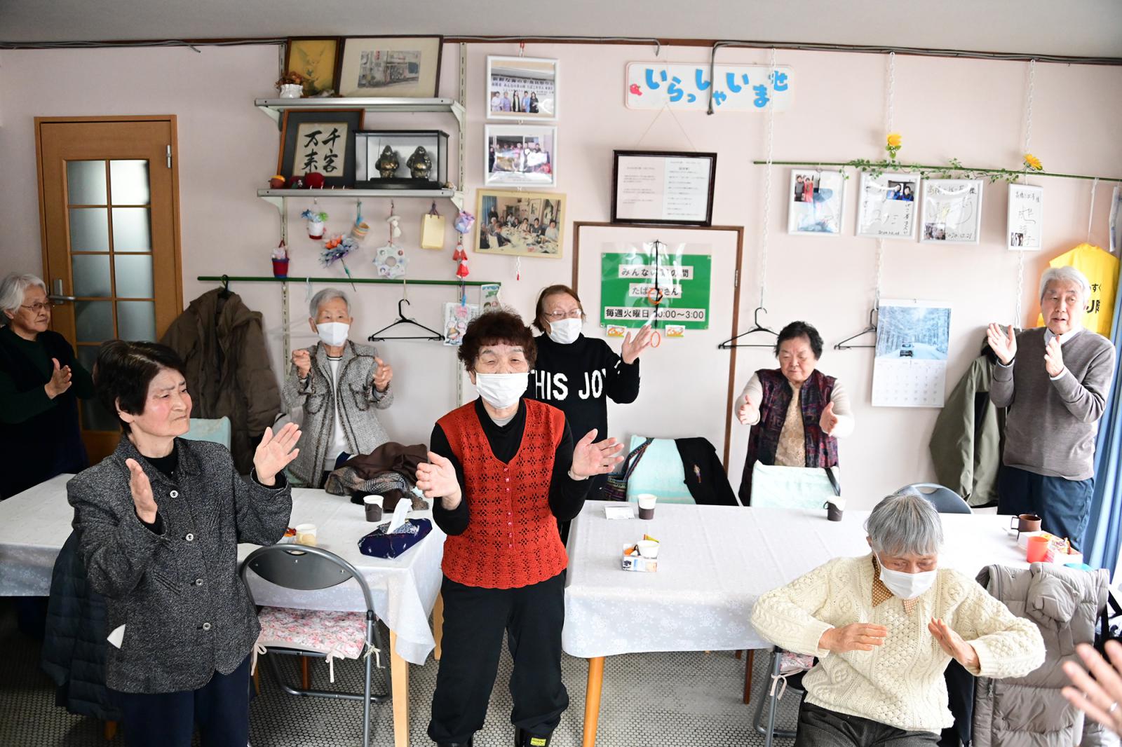高梨地区の居場所づくりを進めていた川合さんが令和3年に開設しました。毎回行われる百歳体操と、ハーモニカやアメリカンフラワーなどの講座や、芋煮会などのイベントが開催されています。楽しい活動で、心も体も動かしています。皆さんいきいきと活動しています。